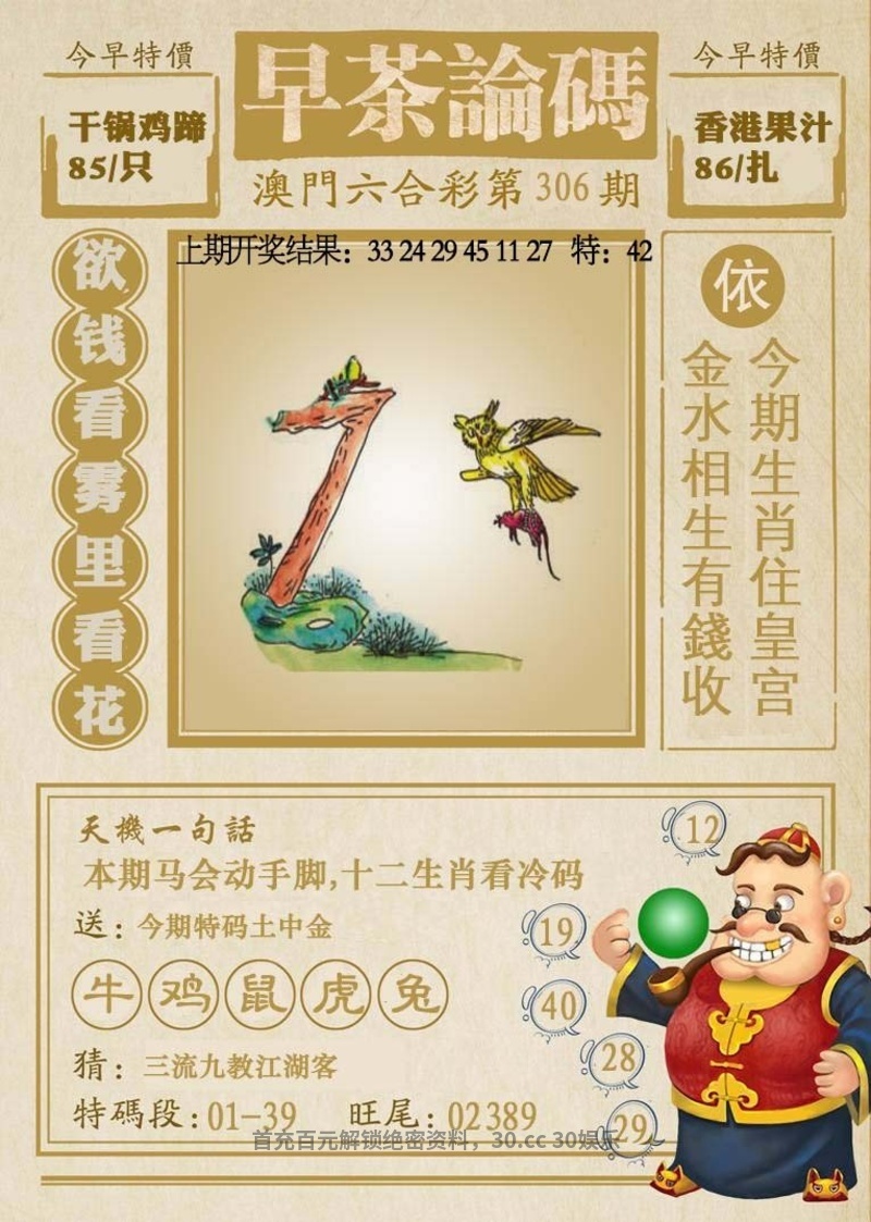 | 306期:☕一尾发财【666尾】开:牛17错 |